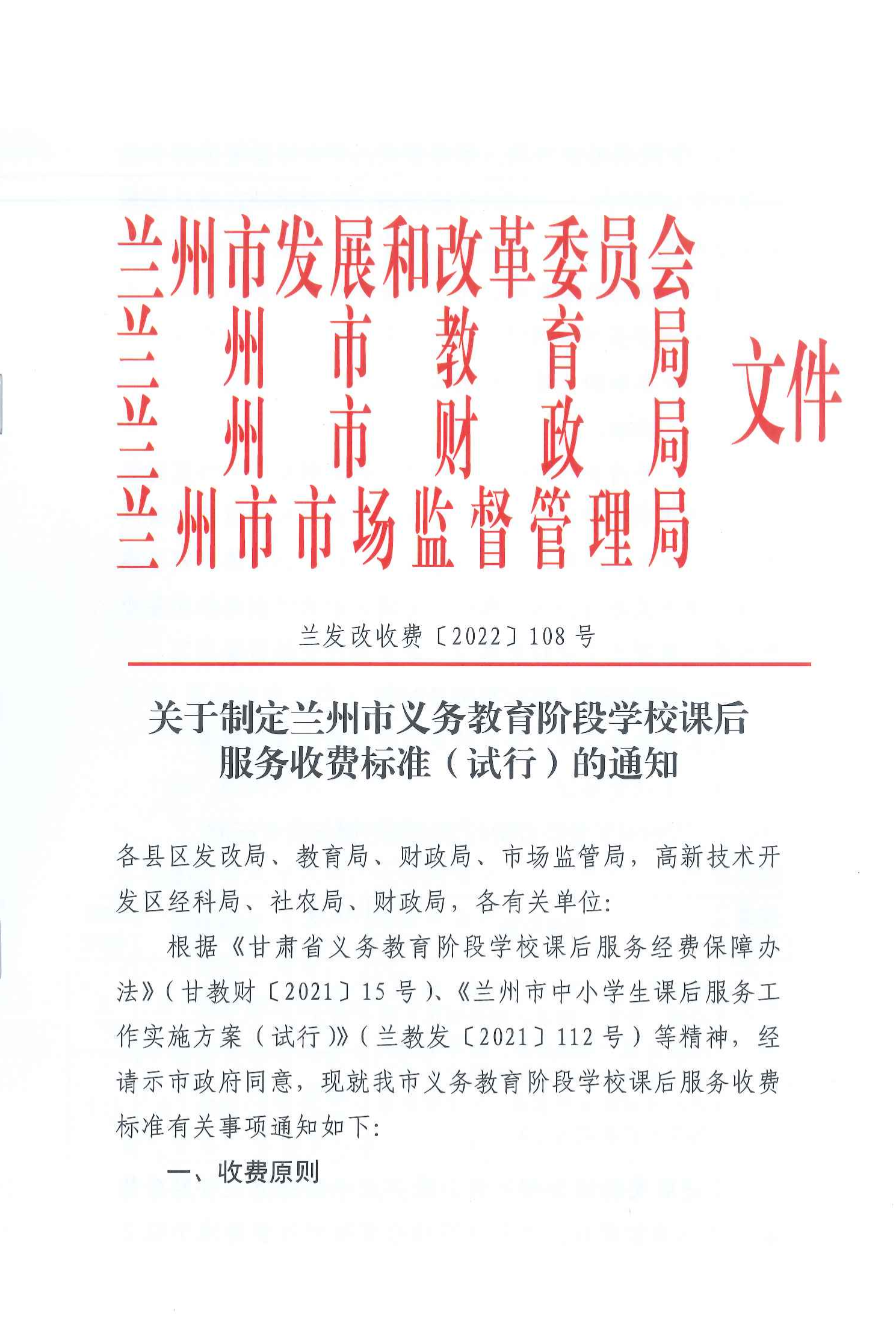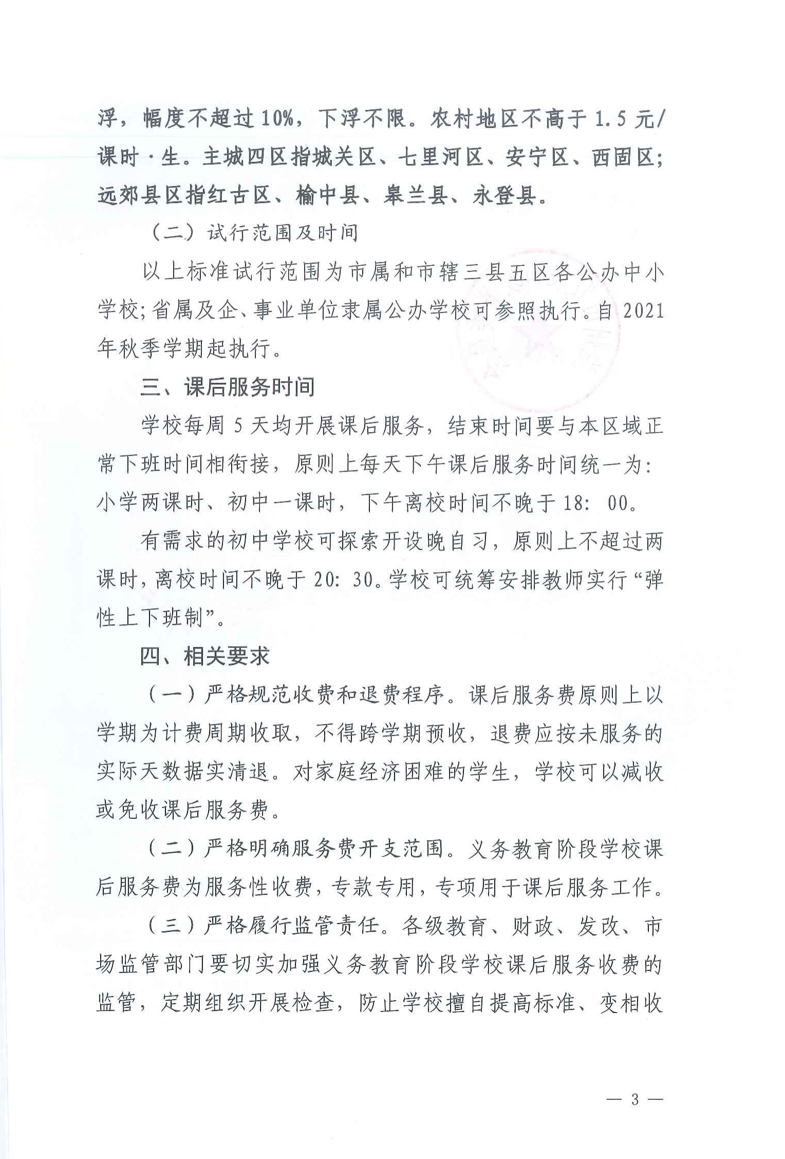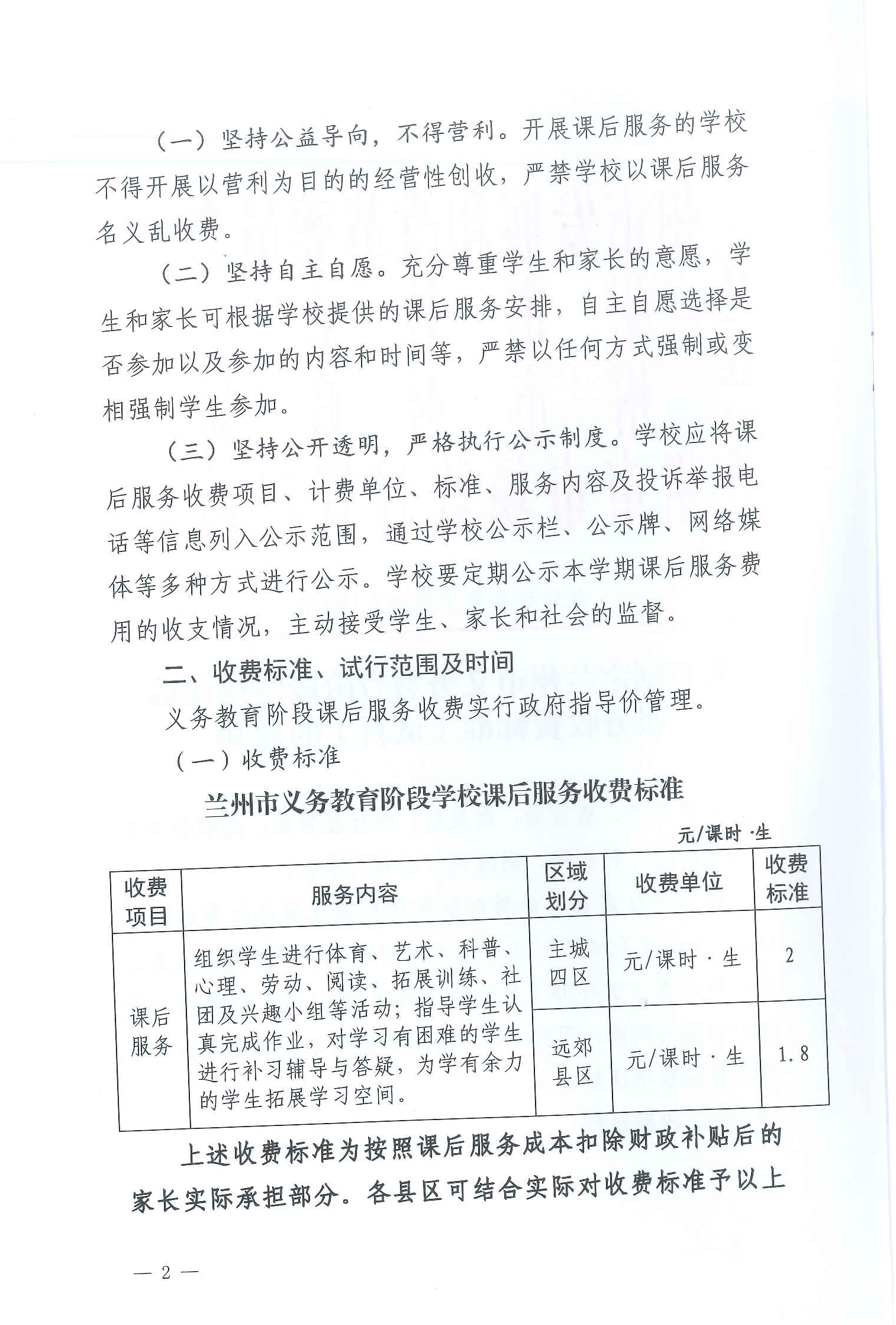 兰州市义务教育课后服务收费标准