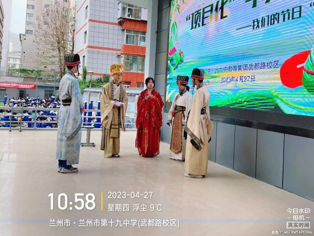 在历史、地理教研组的组织下,利用操场舞台,同学们演绎了一幕幕红色革命剧、校园心理剧、课本改编剧等。舞台剧的编创演,最重要的是剧本创作、台词编写,分角色表演,辅之以服化道。各班同学在老师们的指导下,将情景剧创编项目化活动的亮点呈现出来,节目主题鲜明,精彩纷呈。